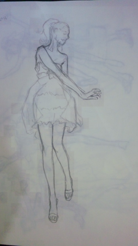 複雑な形をすぐそのまま描くのがのが難しく、フリルは描きこめずに終わった。