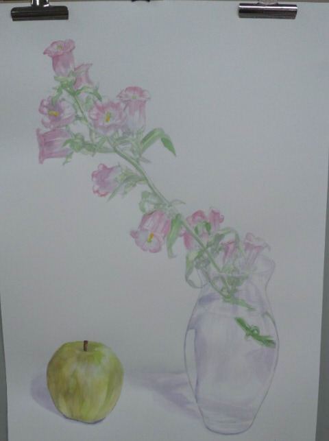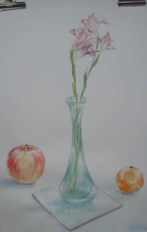 花と林檎とオレンジと。水彩楽しくなってきた!